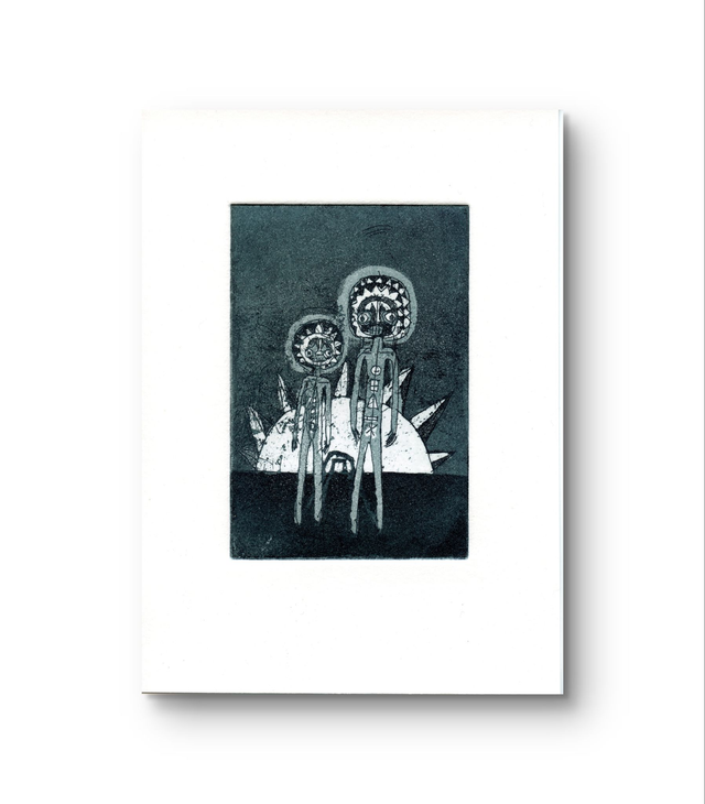 Spirits of the sun etching 2 10x15cm blue